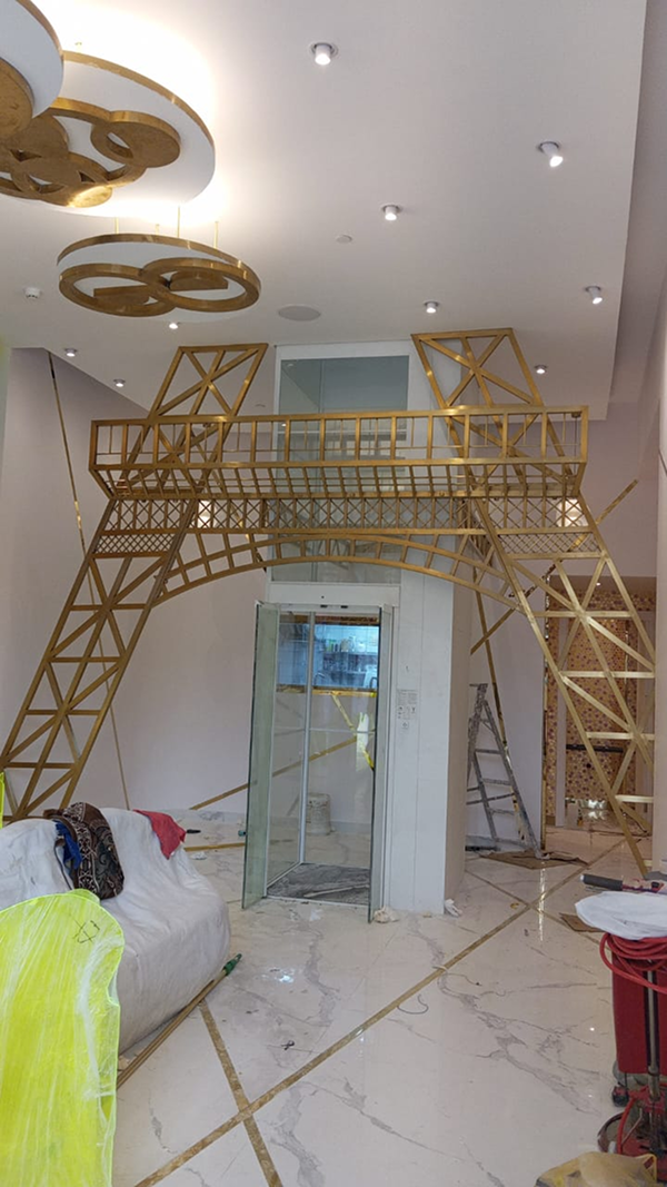 بناء المجسم الحديدي لبرج إيفيل داخل المطعم